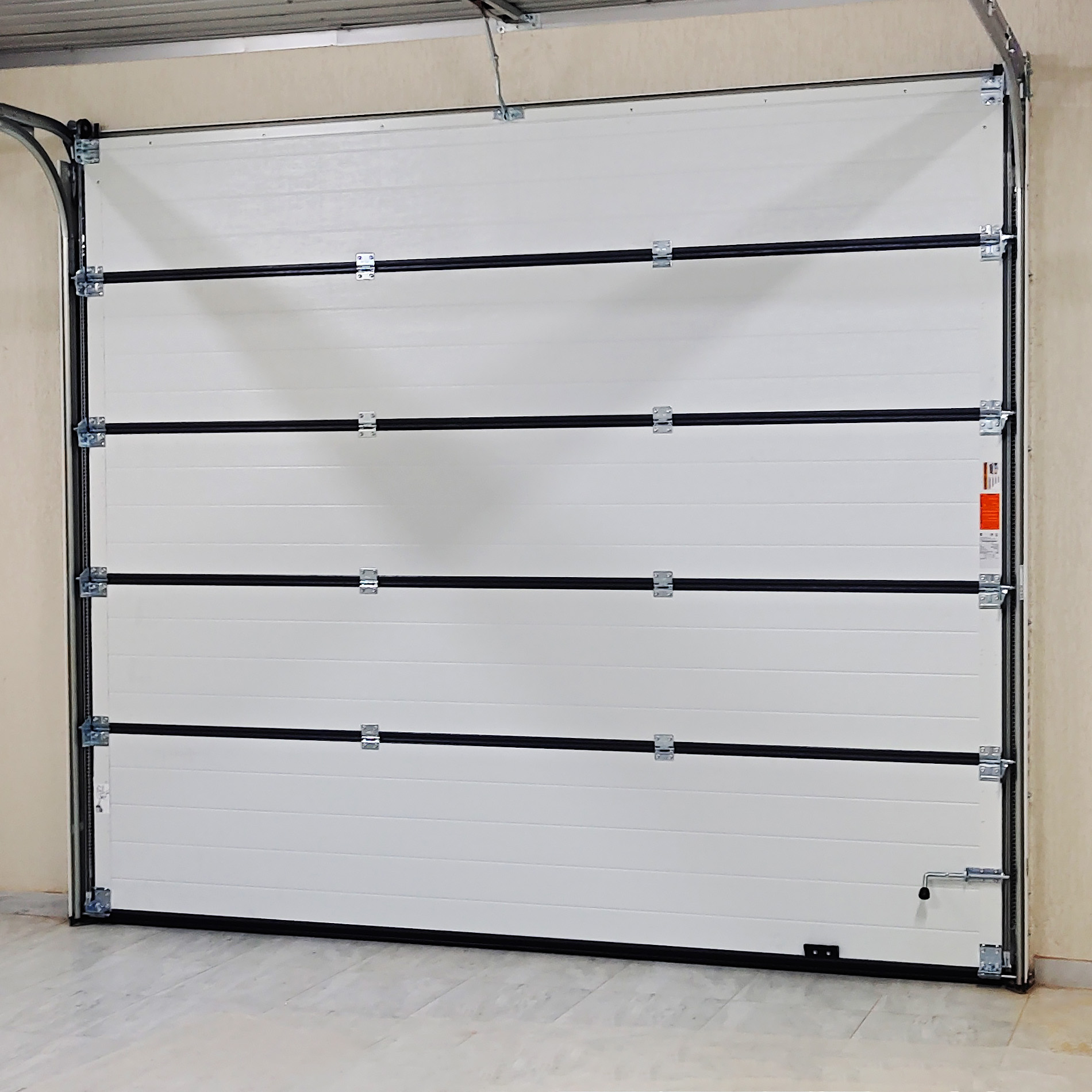Автоматические роллетные ворота оснащены системой аварийного подъема при отключении электроэнергии или выходе из строя электропривода. Благодаря нему вы сможете поднять ворота самостоятельно вручную.